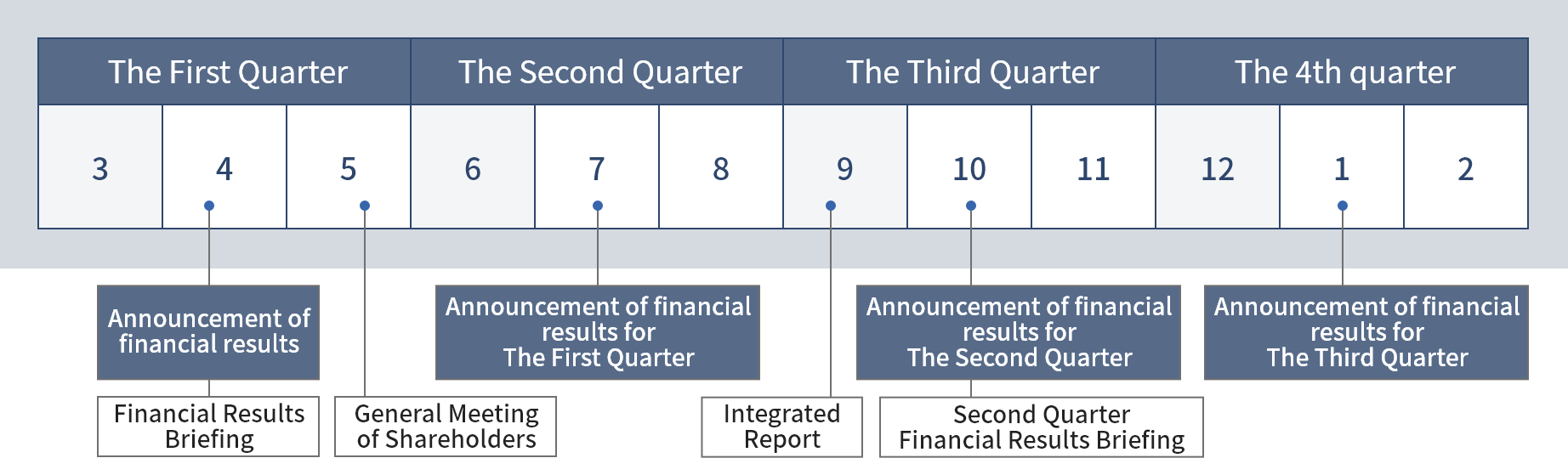 Describes the annual schedule for financial results announcements.